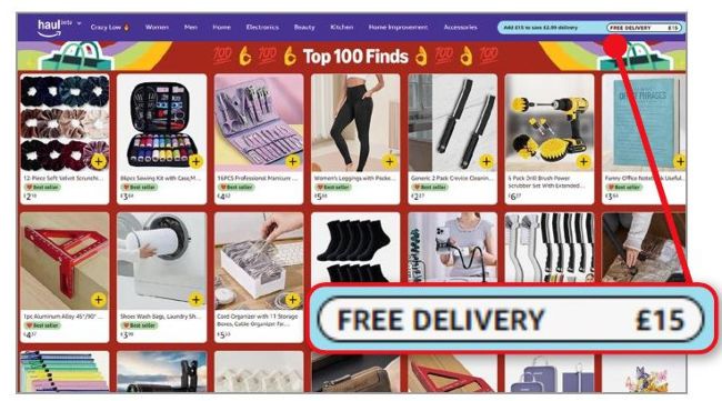 Unlike the main Amazon store, you only need to spend £15 at Amazon Haul to qualify for free delivery (see screenshot below), though it may take a week for your order to arrive.
