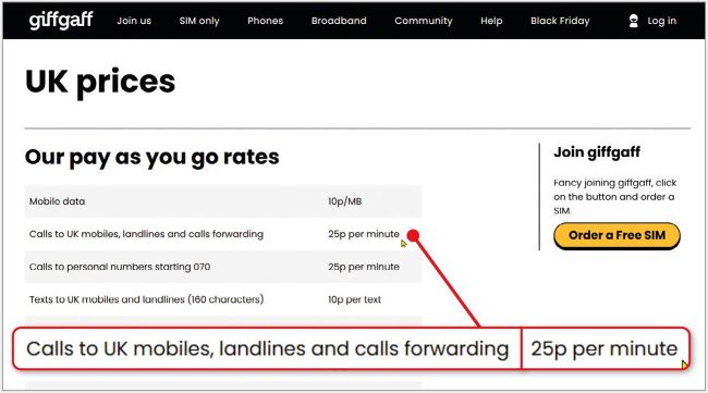 However, the first warning is that the cost of calls and data is eye-watering, at 25p a minute and 10p per MB (www. giffgaff.com/pricing). So, this isn’t a plan you want to be using in anything other than an emergency.
