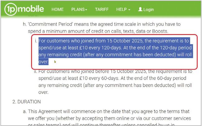 1pMobile’s PAYG plan requires you to spend at least £10 every 120 days