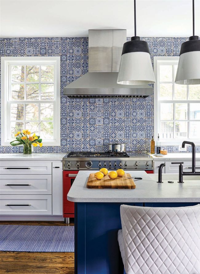 A colorful palette, a unique and elegant backsplash, and thoughtful, functional updates come together in this D.C. area Craftsman cottage kitchen renovation to create a fun space for family time and hosting.