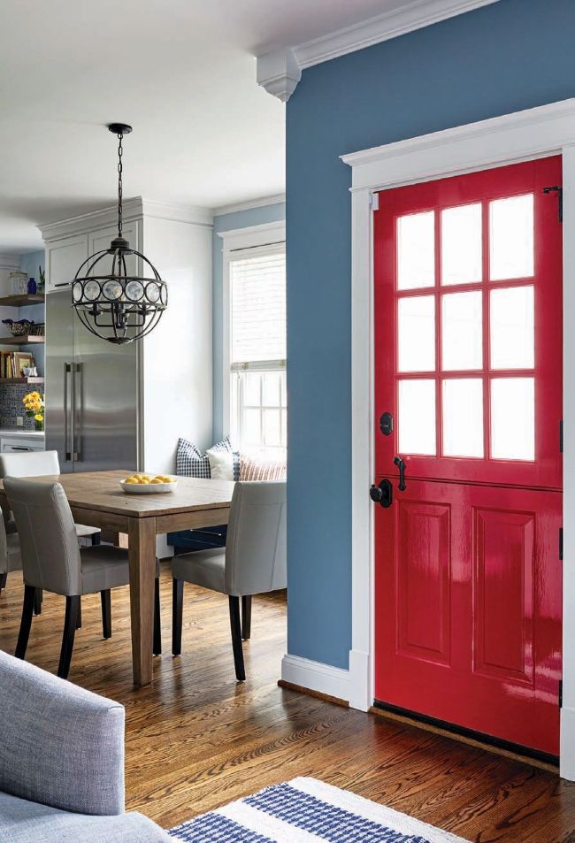 Details and finishing touches complete the look and give the designers a chance to express the unique qualities of the design. Here, the bright red of the Dutch door leading to the backyard was a custom feature and mirrors the showstopping Bertazzoni range across the room.