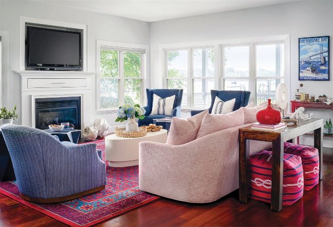 A patriotic palette infuses this bay home with a crisp coastal vibe.