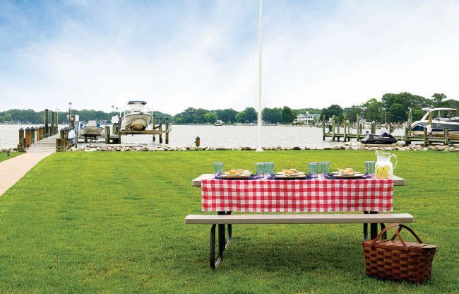 WATERFRONT DINING. A picnic table provides a casual spot to enjoy an easy meal on the waterfront.