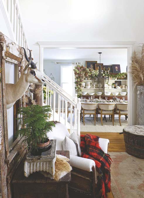 “The holiday season is very meaningful for both my home and my shop,” Kari says. These two branches of her creative expression have long held a special place in her heart. For the past nine years she’s been renovating her Michigan home to reflect her rustic, eclectic aesthetic and for the past five years she has been helping others do the same with their spaces via her shop, which offers European-style wares for the home and garden. Kari has found the two have fed into each other. “Curating for my shop keeps me in a continuous state of finding new pieces and discovering new trends, which leads to change and evolution to my own style for my home,” she says. “I’m consistent in my vintage look, but its interpretations vary as I learn and discover different things that speak to me.”