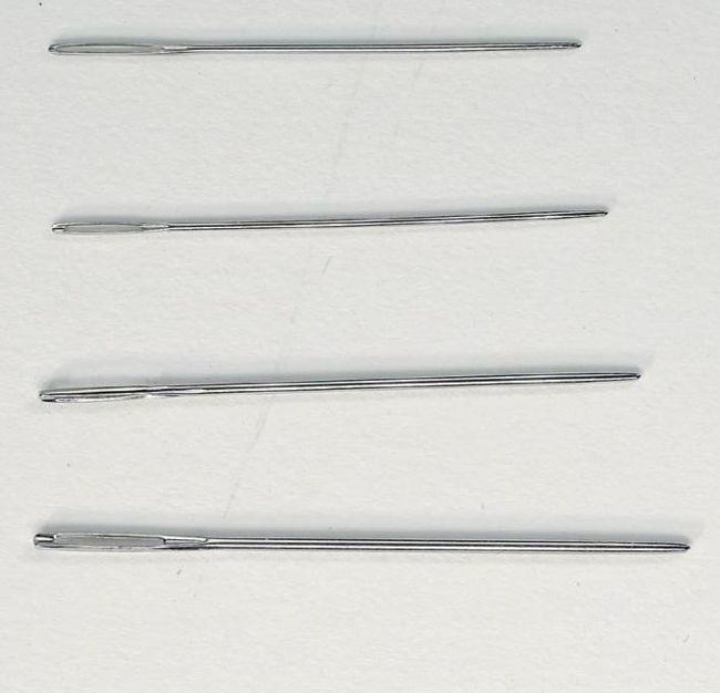 For cross stitch you will need a tapestry needle that has a blunt tip and a large eye. Use size 24 for 14 count or 28 count evenweave, and a 26 for 16 count aida or 32 count evenweave. Use a sharp embroidery needle for finer details such as backstitching and French knots. A thin beading needle is also very useful.