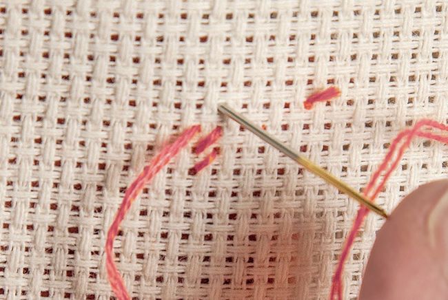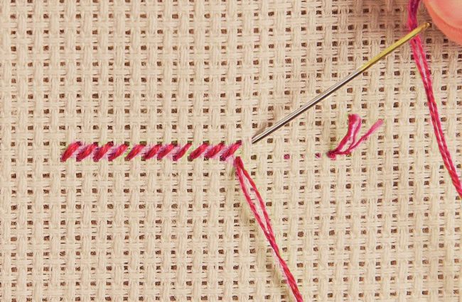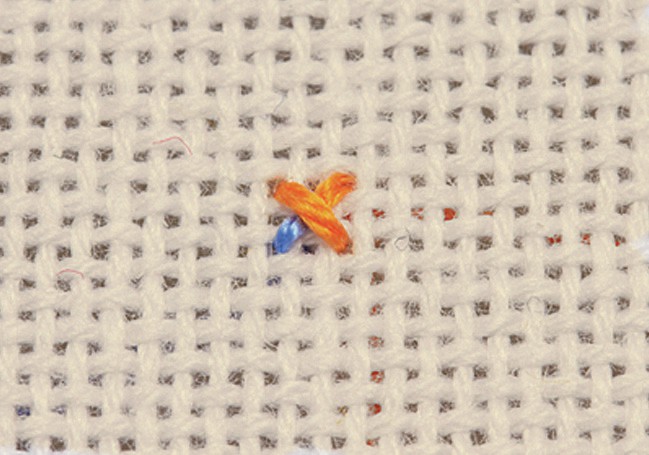 MAKE a second diagonal stitch to make the cross. You can work a row of half cross stitches first, then work back on yourself to complete the stitches. All the top stitches should face the same way.