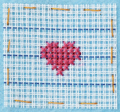 WASTE and soluble canvases are used when stitching on plain fabrics and felts. Tack onto your fabric and stitch as normal. Soluble canvas dissolves in water. For waste canvas, soak in water then remove each thread individually.