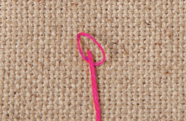 BRING your needle up at your starting point and wrap your thread once or twice around the needle. Use one strand for a small knot and two for a chunkier knot. Hold your thread end firmly and take your needle down, ever so slightly away from where you came up. Slide the twisted thread down the needle, so it rests on the fabric’s surface.