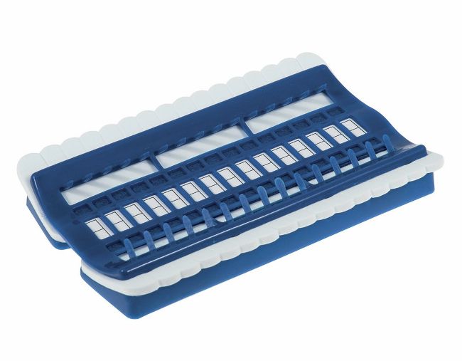 The foam pads have slot notches allowing each thread colour to be held securely and away from other colours. The foam also enables you to place your threaded needles securely in place while working on your project. In the centre is a card strip which can be slotted in and out to easily label thread colours or add chart symbols. The organiser comes with four spare card strips. (d/w/h) 2.5x17.5x11cm.