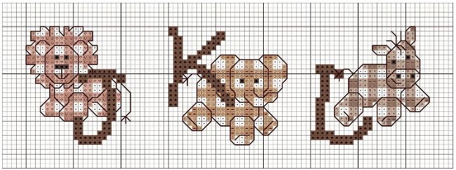 Max. stitch count: 27 high x 26 wide (each letter )