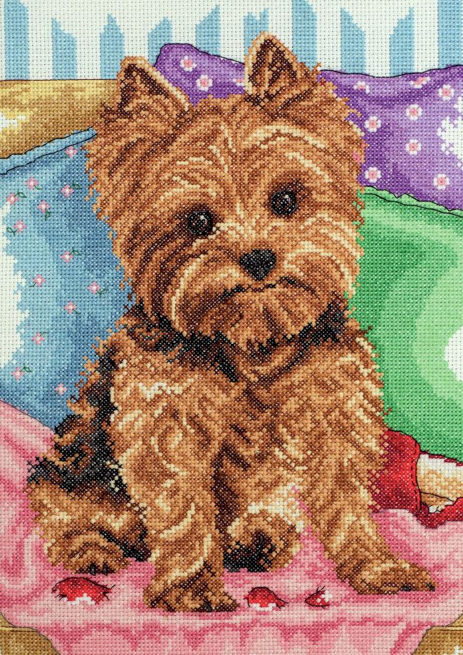 Anyone who has a pup at home, or those of you who’ve longed to have a dog of your own, are going to find it very hard to resist this adorable design! Our Yorkshire Terrier puppy has been busy attacking the upholstery – oops! Caught in the act, he’s using those puppy eyes to try and avert a telling off! Use blended threads to bring his fur coat and innocent expression to life in beautiful detail.