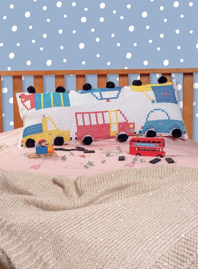 Beep, beep! Buckle up to get started on our kids’ car cushion that comes complete with pom-pom wheels for a fun finish!