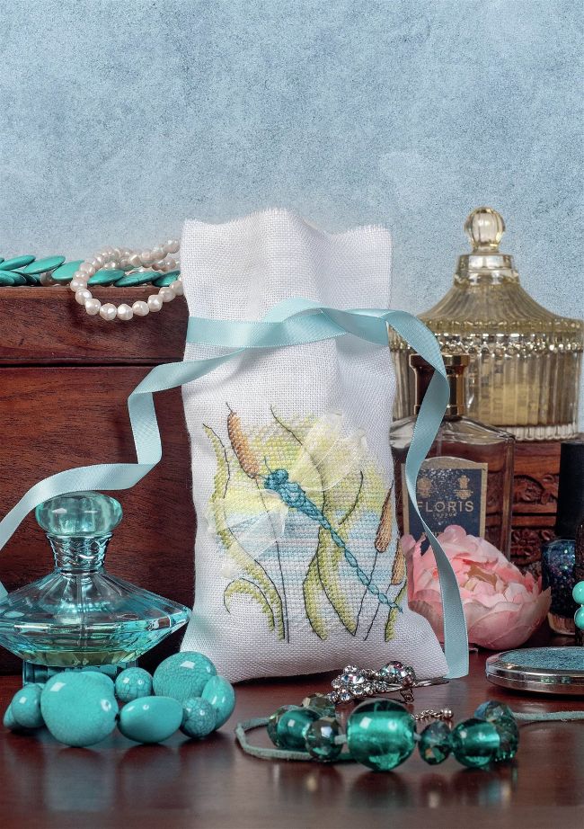 PLACE the linen landscape, then stitch the dragonfly in the centre of the fabric, using two strands for the cross stitch, two for the half cross stitch, and one for the backstitch.