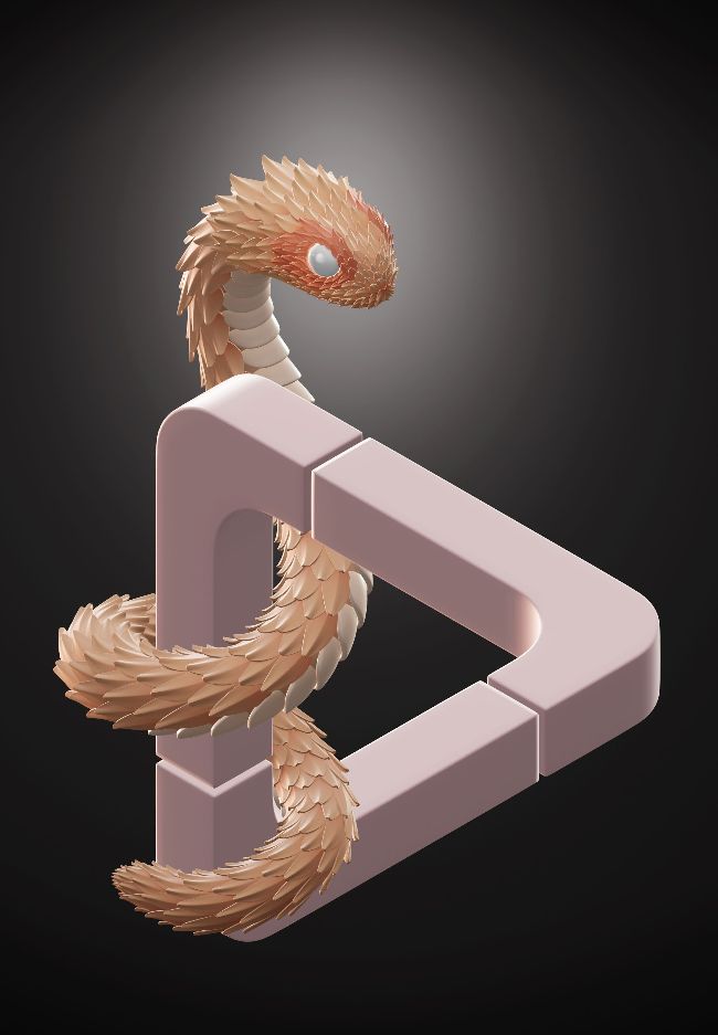 I explored a few topics while figuring the ins and outs of impossible objects, and eventually became fascinated about the idea of snakes curling around one. The bush viper here is part of an upcoming collection of five pieces, where I wanted to further explore this idea using different snakes, each with their own characteristic pattern, as well as different impossible structures.