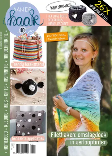 De zomer lijkt ieder jaar weer voorbij te vliegen, maar niet getreurd: de herfst komt eraan! Het heerlijke seizoen waarin je op regenachtige dagen binnen aan je favoriete haakproject werkt en op lange nazomer avonden buiten van de laatste warmte geniet. Fleur je tuin voor deze heerlijke avonden op met de gehaakte feesthangers of met de waxinelichtjes in hoesjes van grof garen. Koelen de avonden toch wat meer af? Dan haak je een van de leuke sjaaltjes, zoals de vrolijke regenboog sjaal. Ook gaan we deze uitgave weer aan de slag met leuke gehaakte gifts, zoals verschillende leuke kraamcadeaus. Een knuffelbare rammelaar-beer die geluid maakt, een vissen mobiel voor boven het wiegje of een slinger met geboortevlaggetjes. Heb je na al die inspiratie zin om zelf met een uitdaging aan de slag te gaan? Wat dacht je van het leren van een nieuwe techniek! Leer stap voor stap tunisch haken in Aan de Haak 10.