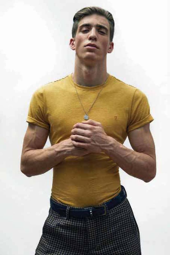 Ben wears t-shirt, £30, by Farah, trousers, £295, by Coach 1941, belt, £350, by Valentino at Matches Fashion, necklace, stylist’s own