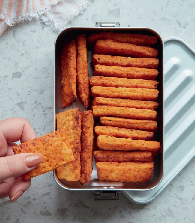 P76: CHEESE & WALNUT PALMIERS WITH PICKLED WALNUT SAUCE