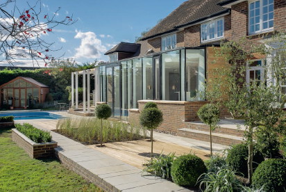OB Architecture created this glazed extension so the occupants could enjoy views of the garden. Wooden decking, paving and masonry elements help the outdoor space complement the original building