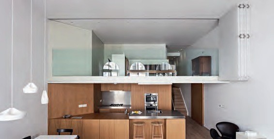 In this design by Viewport Studio, bifold panels can be pulled across in front of the glass balustrade to shut the mezzanine space off when needed