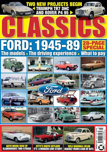 The centrepiece of the Spring issue is a 28-page feature on the post-war Fords from 1945-1989. Elsewhere we have a 1953 Vauxhall Velox, an Auto Union 1000SP, a Buick Skylark GS and a very early Jaguar XJ-S. There are also two new project cars – a Triumph TR7 and a Rover P4 – while our Emerging Classic is the quirky Daihatsu Terios and our Buying Guide looks at the MGF and TF.
