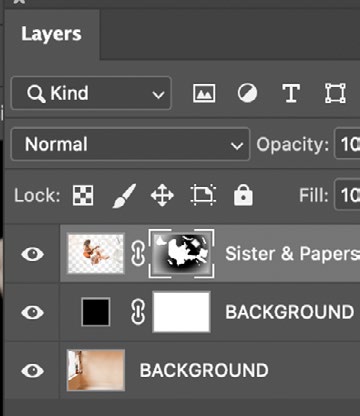 When I’m shooting a look for compositing, I like to start with the shot that will contain the subject. For this image, I had my sister-in-law sit on a stool and place her legs on a table, since I planned on doing a levitation image. I also had her flip her hair forward, for a more mysterious, dreamy feel.
