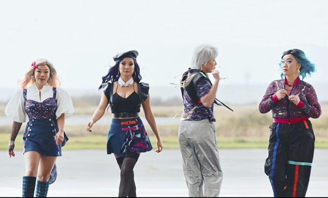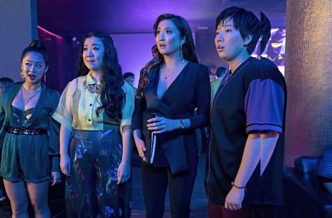Party on: Kat (Stephanie Hsu), Lolo (Sherry Cola), Audrey (Ashley Park) and Deadeye (Sabrina Wu) are all eyes;