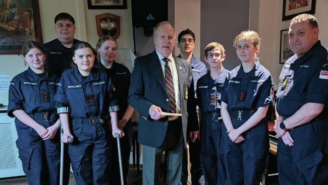 Mark Smith presents a cheque to the Sea Cadets