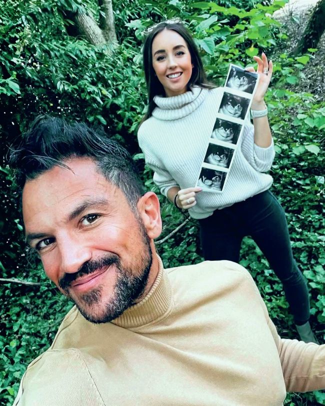 He has always been a solo artist, but Peter Andre’s kids will soon be a five-piece following the news that the singer and his wife Dr Emily MacDonagh are expecting a baby. The couple made their big reveal on social media, posting a photo in which Emily stands behind Peter, holding a strip of scan photos (left).