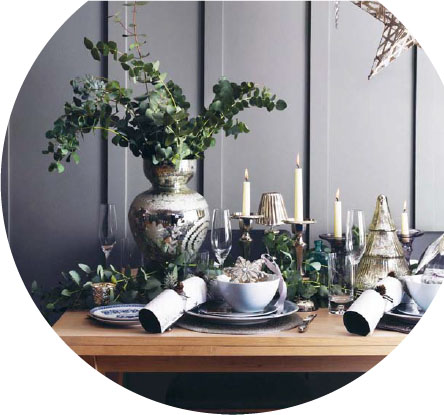 Luxury copper crackers, £40 for six; starry tealight holders, £20 for nine, both Cox & Cox. Sittning chopping board, £9, Ikea. Brass cutlery, Broste Copenhagen