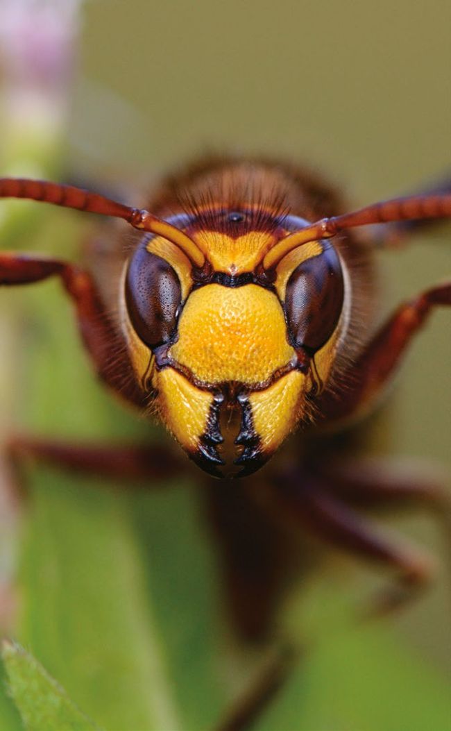 There are many different groups of Hymenoptera – the insect order that also includes ants and bees – that are called wasps, including an awful lot of very obscure parasitoid wasps. However, when most people think of wasps they think of the black-and-yellow variety that build paper nests and live in colonies. These common wasps are classified in two very closely related genera: Dolichovespula and Vespula – the common wasp is Vespula vulgaris, for instance. Hornets, with one British species and several in Asia, are the closest relatives to these wasps, but separated from the ancestors of Dolichovespula and Vespula long enough ago that we place them in a separate genus: Vespa. As well as being substantially bigger than a wasp, the hornet can be separated from wasps in Britain by its ‘fat’ head: looking from above, the head expands behind the eyes, whereas in Vespula and Dolichovespula the head narrows behind the eyes.