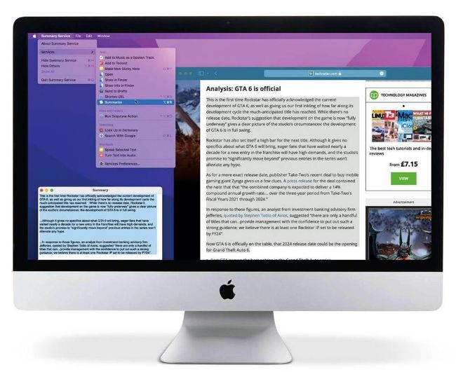 This is a feature built into the Services section of macOS that lets you highlight text in any document or web page, and then reduces it to a shortened version to make it much easier to skip straight to the key facts. It can be set up as a shortcut.