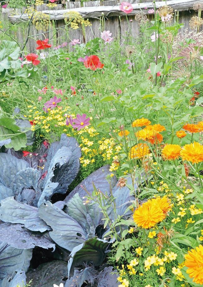 Sow just a few annual flowers in the corner of your plot or in between rows of long-term crops such as brassicas and sweetcorn. Not only will you enjoy the colour on your plot, you will encourage and help pollinators such as bees, insect predators and, more importantly, you will actually confuse the pests. In between a row of cabbages or parsnips sow a row of hardy annuals such as Californian poppies, calendula, cornflowers and cosmos. Many companies sell mixtures of annual flowers too.