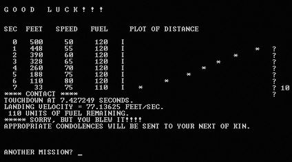 The original Lunar Lander was a text game developed in FOCAL by Jim Storer in 1969.