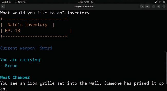 What dungeon would be complete without a splash of paint? While text adventures traditionally are just so, that doesn’t mean you need to make your player suffer through endless screens of black and white. Plenty of simple text games incorporate elements of colour, sound effects and even simple graphics, which are the focus of the final part of this series of tutorials. If you’ve been following the previous articles in this series, by now your text adventure should be starting to take shape. Your character can move freely between rooms, interacting with items. Some are helpful and some hinder them. Through introducing HP (hit points), players now have a vested interest in keeping their character alive.