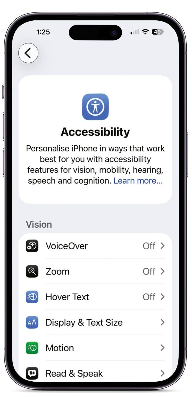 YOU’LL NEED Some features, like Personal Voice, need an iPhone 12 or later