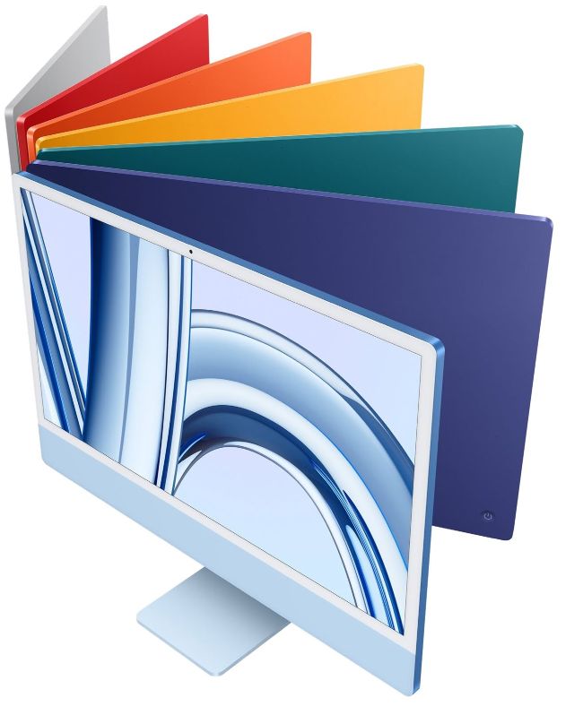 Display: 23.5in 4.5K Retina (4480x2520) with True Tone Chip: Apple M3 with 8-core CPU (4 performance cores, 4 efficiency cores), 8-core GPU, 16-core Neural Engine Memory: 8GB (upgradeable to 24GB)