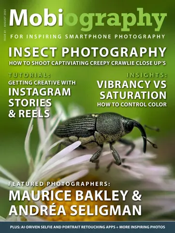 Inside, you'll find interviews with mobile photographers Maurice Bakley and Andréa Seligman. We also take a look at how to shoot captivating photos of insects. Mark Myerson looks at the difference between vibrancy and saturation and how to use them. We also look at how to get creative with Instagram Stories and Reels.