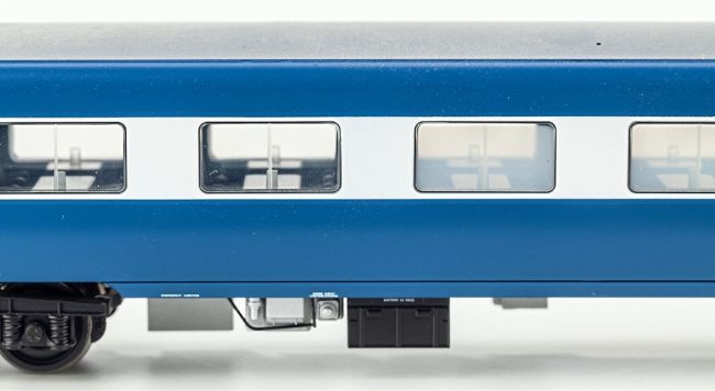 Sunlight has turned Bachmann Blue Pullman glazing white and cloudy