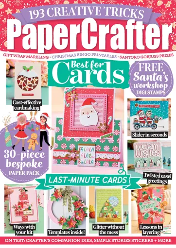 Issue 180 is on sale now! Have a go at our craft-me-quick festive cards, marbled wrapping paper, a pop-up robin card, or whip up a selection of makes with your bonus Christmas Dinner paper collection – expect