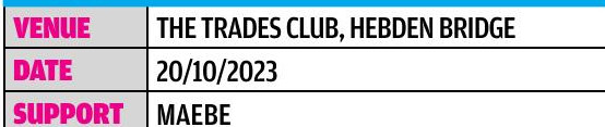 Storm Babet threatens to make tonight’s show, the belated album launch for L.O.E’s debut, The World & Everything In It a washout. But the droves that make it to Hebden Bridge, despite the weather-beaten travel chaos, show that a bit of rain won’t stop northerners from having a good time.