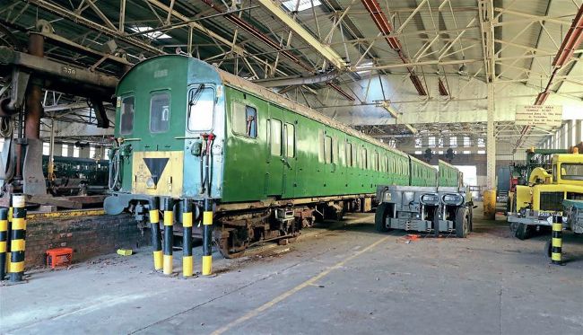 Two-car EMU No. 5705/5703 inside COVES’ D8 shed at Bicester, one of two Class 416s owned by the group. ALL PHOTOS TAKEN ON