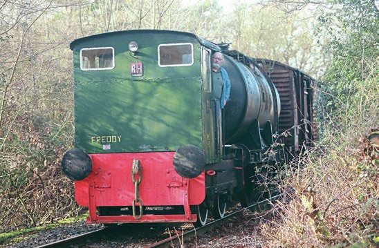 Ex-Cadbury Ruston & Hornsby RH48 No. WD40 shunts some of the group’s wagon collection.