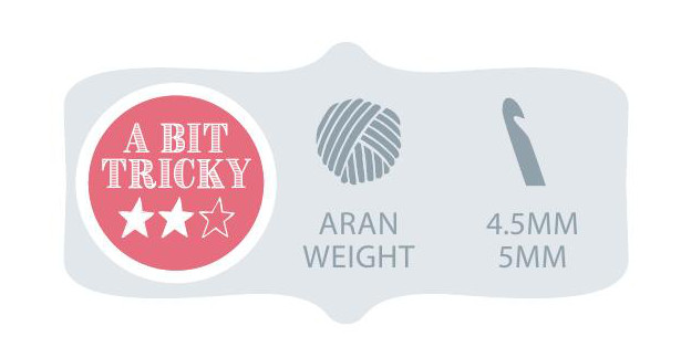 2 fans and 12 rows measure 10x10cm (4x4in) over patt using a 5mm hook, or size needed to obtain correct tension