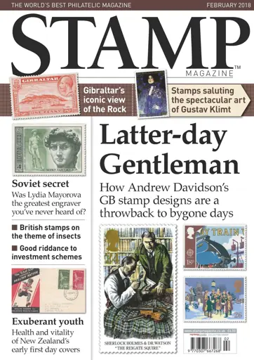 In the February issue we talk to illustrator Andrew Davidson about his work on British stamps, and how his specialities of wood engraving and gouache painting have helped to create many memorable issues across three decades. We also study how the controversial life and eye-catching art of Gustav Klimt have been celebrated on stamps in the century since his death, notably in his native Austria, and why New Zealand’s first day covers have become such a popular collectable. Our series on the Great Engravers celebrates the unheralded work of Lydia Mayorova for the Soviet Union, and our regular Commonwealth Classics slot features Gibraltar’s attractive first pictorial issue of 1931. In our news pages you’ll find details of cutbacks in Royal Mail’s philatelic services, while our Devil’s Advocate columnist argues that the hobby is better off without stamp investment schemes.