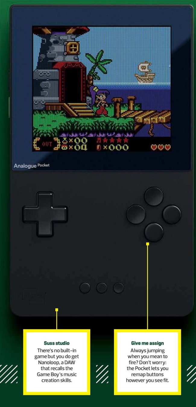 Of course the console’s design most echoes classic Nintendo fare, but there’s nothing old-school about the specs – most notably the gleefully over-the-top 3.5in 1600x1440 LCD screen. That’s 10 times the original Game Boy’s resolution and lets the Pocket perform all manner of tricks to simulate original display modes, should you prefer pixel-grid grime to pin-sharp upscaling. And it’s all protected by Gorilla Glass.