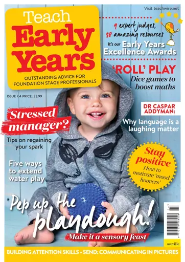 8 ways language enriches early learning, how to pep up your playdough, and why nursery managers’ wellbeing is at risk. This issue we also announce the winners of the first Early Years Excellence Awards – our 24-page special features 38 fantastic resources, including products and publications spanning the EYFS, engaging picture books and effective CPD solutions. Elsewhere discover what laughter tells us about the development of speech, explore the challenges of middle leadership in the Foundation Stage, and find simple ways to boost maths learning with dice. Plus, don’t miss our nursery rhyme-themed activities for summer!