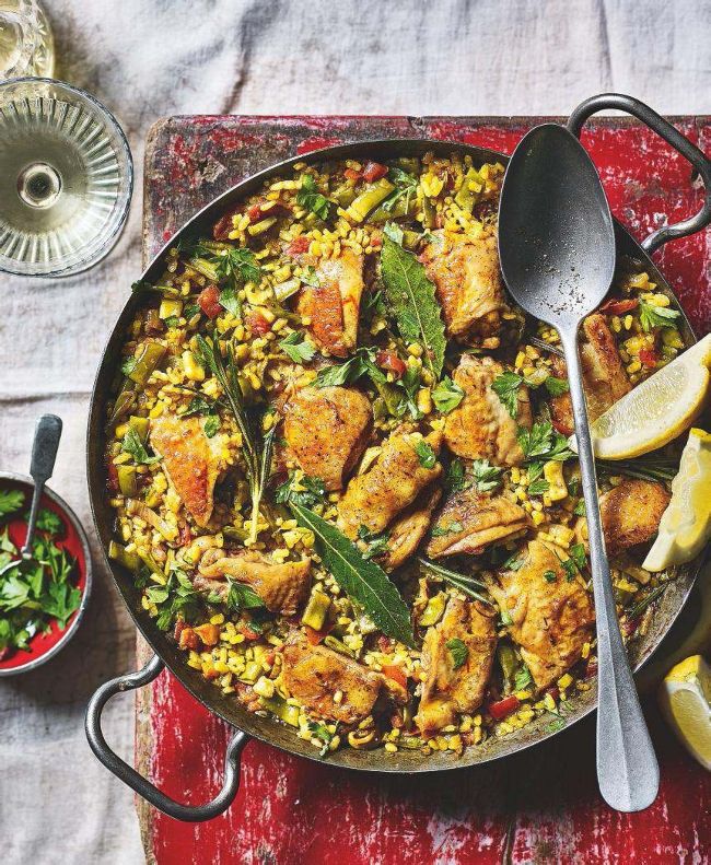 This much-loved Spanish dish is the ideal one-pan supper. Traditionally made for Sunday lunch, it’s cooked over an aromatic open fire in a shady spot away from the fierce midday sun, with everyone diving into the finished creation to nab the choicest morsels