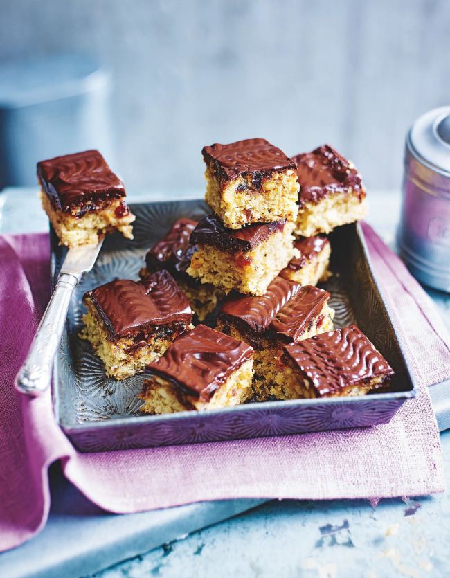PER SERVING (FOR 16) 403kcals, 23.9g fat (11.1g saturated), 5.9g protein, 40.1g carbs (23.1g sugars), 0.3g salt, 1.9g fibre