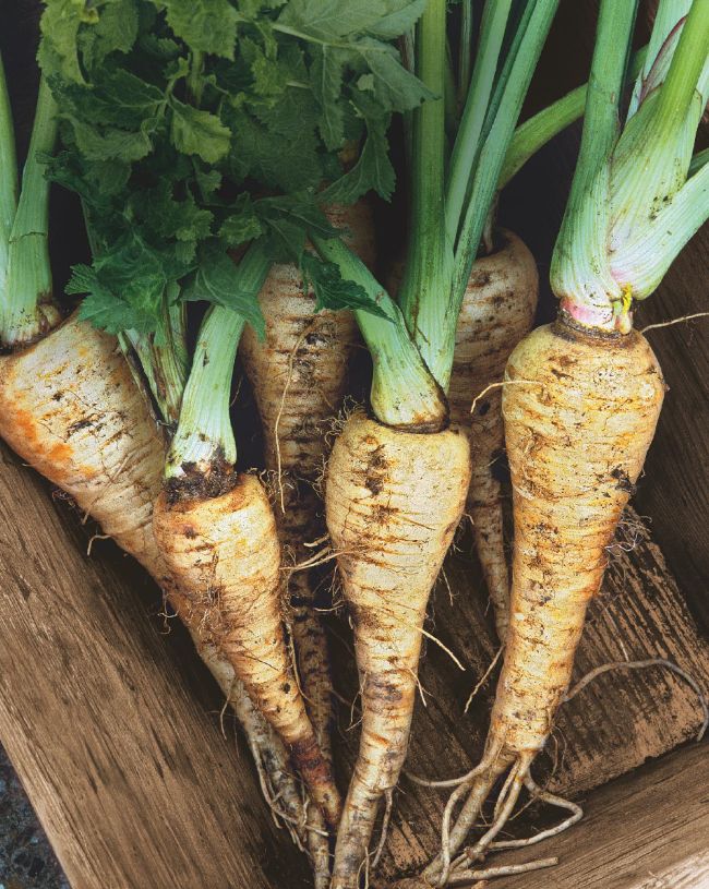 "How I hated parsnips as a child. They were the disappointing cousin of the roastie at Sunday lunch. In time, though, I grew to love their curious vegetal sweetness, their chewiness and the way they caramelise so beautifully in a hot oven. They always feature in my Sunday roasts now, as well as in warm salads, soups and röstis – wherever I want a burst of both sweet and savoury. They’re said to be at their best after the first nip of frost, but I say buy and enjoy them now, and for the whole winter to come."