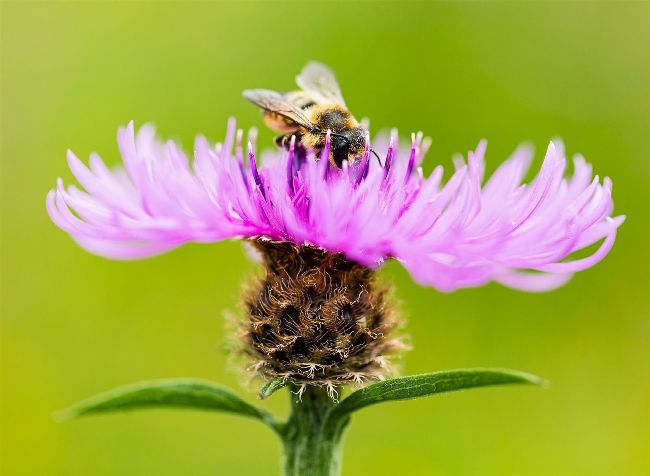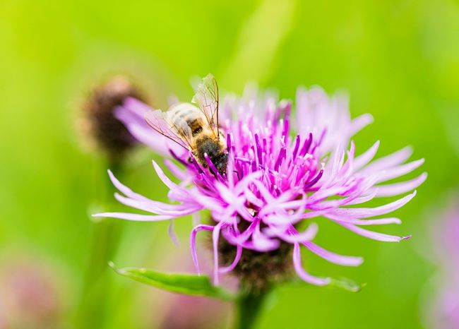 It’s easy to fire off a snap of a bee or insect on a flower (above) – but look at that background! For a better shot (right), get down low, line up a clean backdrop and lie in wait…